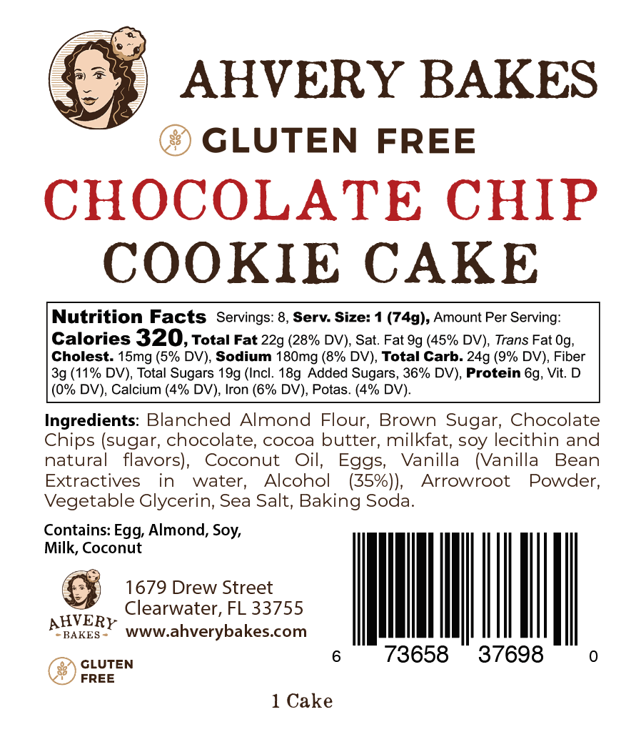 8-Inch Heart-Shaped Gluten-Free Chocolate Chip Cookie Cake